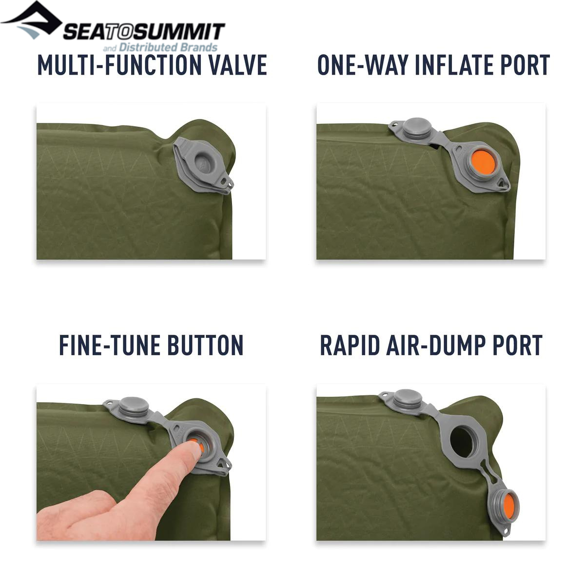 All Sea to Summit self-inflating mats feature a unique, multi-function reversible single valve, designed specifically for self-inflating mats. No more fighting re-inflation as you roll up your mat!