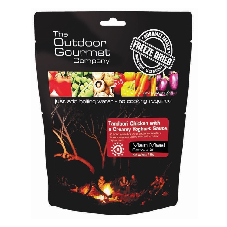 Fuel your adventures with The Outdoor Gourmet Company’s Tandoori Chicken with a Creamy Yoghurt Sauce, an Indian-inspired cuisine of Tandoori seasoned chicken accompanied with a creamy yoghurt sauce. The Outdoor Gourmet Company has teamed up with top Australian chefs using the finest ingredients and modern freeze dried technology to create a selection of convenient and lightweight gourmet meals. Whatever your need, from extreme expeditions or overnight ambles to emergency rations, you now have the option of choosing from an enticing range of delicious and nutritionally-sustaining meals that can be prepared inside the pack in 10 minutes with just a bit of boiling water.